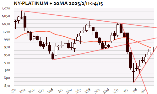 NYプラチナ:969.9 ドル 4/15(火) ▲12.4(1.30%)