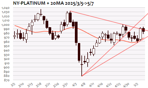 NYプラチナ:983.2 ドル 5/7(水) ▼8.9(0.90%)