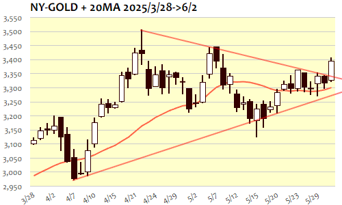 NY金:3,397.2 ドル 6/2(月) ▲81.8(2.47%)