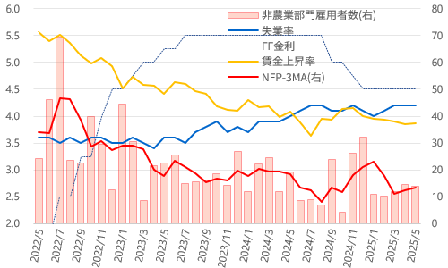 米労働市場はゆるやかな悪化傾向にはあるものの、足下ではトランプ関税の影響で一段と悪化、とはならず、底堅く推移しているようです。