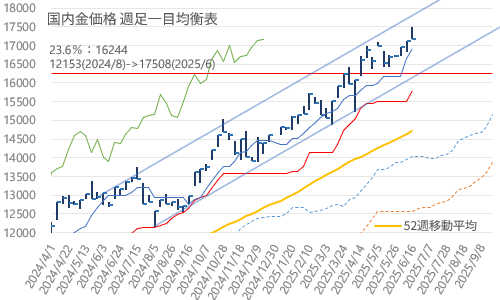 国内金:17,176 円 6/20(金) ▼19(0.11%)
