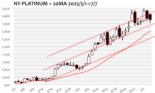 20年代前半の保合い上抜けでプラチナが目指す20年代後半高値 7/8(火)