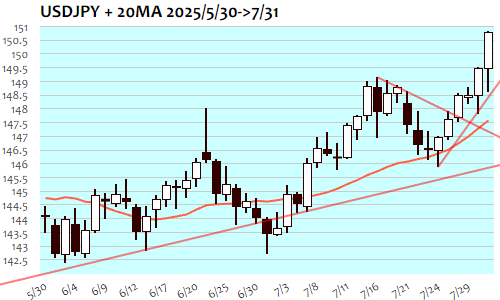 ドル円:150.80 円 7/31(木) ▲1.29(0.86%)