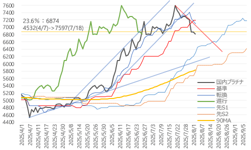 ※参考:金プラチナ国内価格8/4とチャート