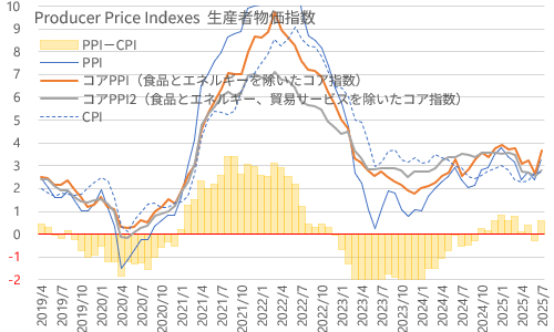 ほぼ予想どおりとなったCPIに対してPPIは予想外の上振れ。