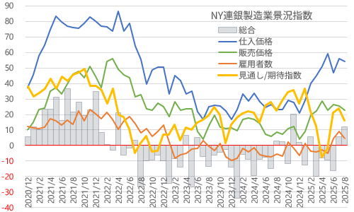 NY連銀製造業は2ヵ月連続予想外の好調、インフレ懸念も高止まり 8/16(土)