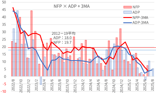 米8月ADPも下振れ、相関性高まるNFPとADPの3ヵ月平均