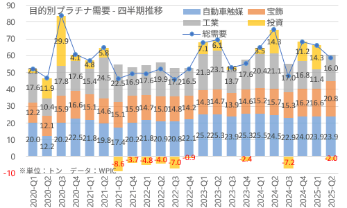 プラチナ需給25年Q2-年間見通しでは3年連続供給不足へ 9/11(木)