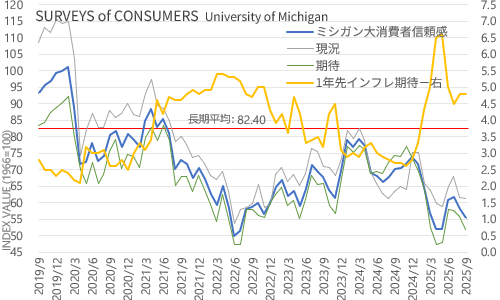 ミシガン大消費者信頼感指数も9月は予想以上に低調 9/13(土)