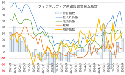 予想外の急減速となったNY連銀とは対照的に、フィラデルフィア連銀の製造業9月は予想外の急回復。