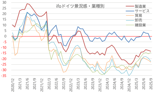 サービス業が9月に急失速、ドイツIFO景況感は悪化 9/25(木)