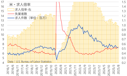 2ヵ月連続の低下で2021年4月(0.96)以来、4年4ヵ月ぶりの低水準。節目の1.0を2ヵ月連続で割り込む状態となり、失業者数増加の勢い加速への警戒感も。