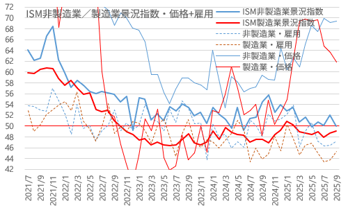 ISM非製造業は予想以上に失速、民間指標でも9月雇用は低調 10/4(土)