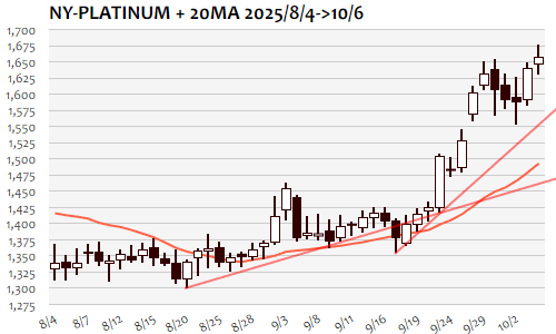 20年代前半の保合いを上抜けたプラチナは20年代後半高値圏? 10/3(金)