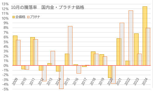 それでなくとも上昇しやすい10月の金価格、プラチナ価格