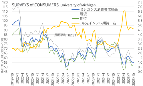 米消費センチメント、10月速報は予想上回るも5ヵ月ぶり低水準 10/11(土)