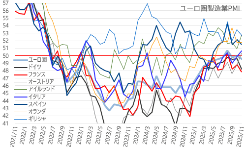 <ユーロ圏製造業PMIランキング-2025年11月>
