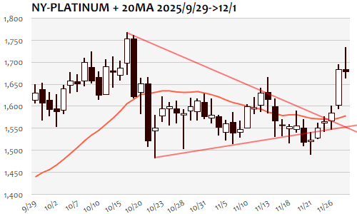 三角保合い上抜け、金プラチナともに年内最後?の最高値トライ 12/1(月)