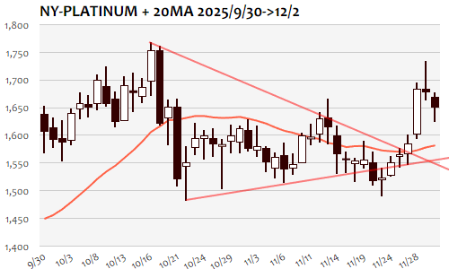 三角保合い上抜け、金プラチナともに年内最後?の最高値トライ 12/1(月)