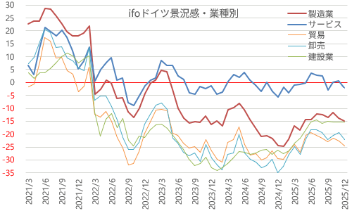 製造業は-14.8で続落、8ヵ月ぶりの低水準。貿易関連も8ヵ月ぶり低水準、卸売も3ヵ月ぶりの低水準へと反落。