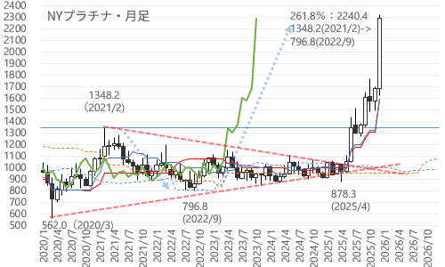2ヵ月半ほど前、NYプラチナが1580ドル台だった頃の予想としては、リーマンショック後の高値圏「1900ドルの大台回復トライ」の可能性も意識されてはいましたが、あっと言う間にこれを突破。
