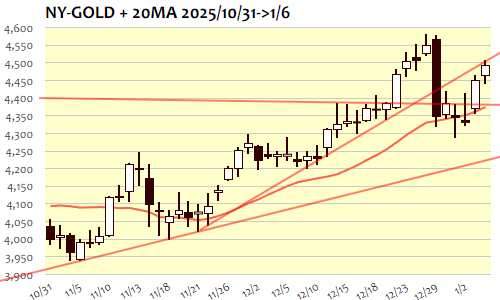 NY金:4,496.1 ドル 1/6(火) ▲44.6(1.00%)
