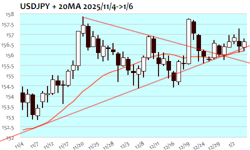 ドル円:156.67 円 1/6(火) ▲0.27(0.17%)