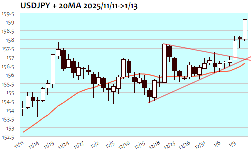 ドル円:159.15 円 1/13(火) ▲1.01(0.64%)