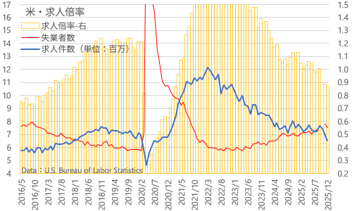 求人倍率は0.87件/失業1人。2021年3月(0.87)以来、4年9ヵ月ぶりの低水準。
