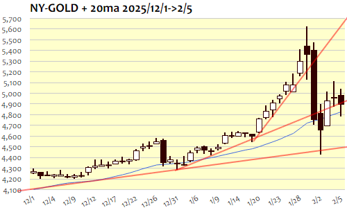 NY金:4,889.5 ドル 2/5(木) ▼61.3(1.24%)