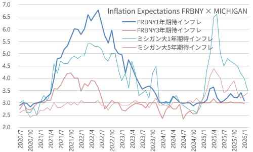 1月のNY連銀消費者調査では、1年先のインフレ期待は3.09%。