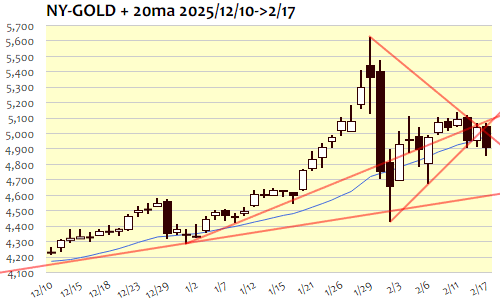 NY金:4,905.9 ドル 2/17(火) ▼140.4(2.78%)