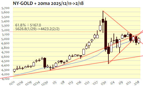 NY金:5,009.5 ドル 2/18(水) ▲103.6(2.11%)