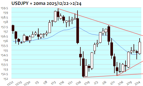 ドル円:155.90 円 2/24(火) ▲1.20(0.78%)