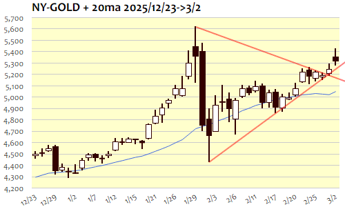 NY金:5,311.6 ドル 3/2(月) ▲63.7(1.21%)