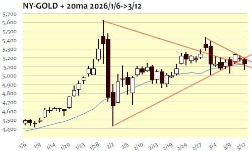 NY金:5,125.8 ドル 3/12(木) ▼53.3(1.03%)