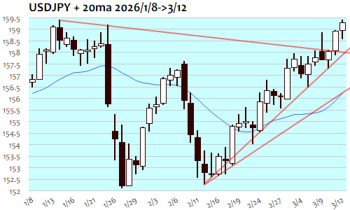 ドル円:159.33 円 3/12(木) ▲0.38(0.24%)