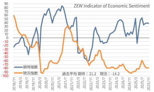 ドイツのZEW景況感指数、11月の期待指数は+38.5。