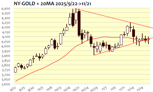 NY金:4,079.5 ドル 11/21(金) ▲19.5(0.48%)