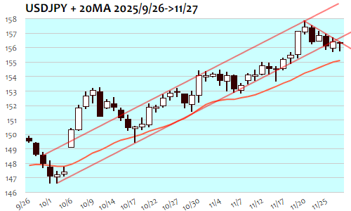 ドル円:156.29 円 11/26(水) ▼0.16(0.10%)