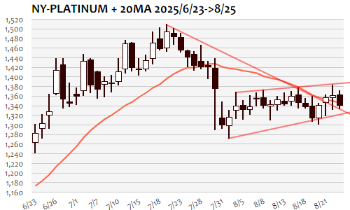 NYプラチナ:1,338.8 ドル 8/25(月)
