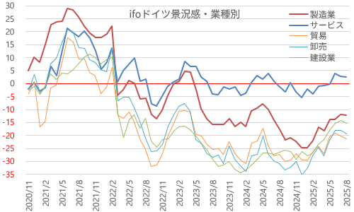 ドイツIFO景況感は期待先行で回復基調維持も全業種で失速
