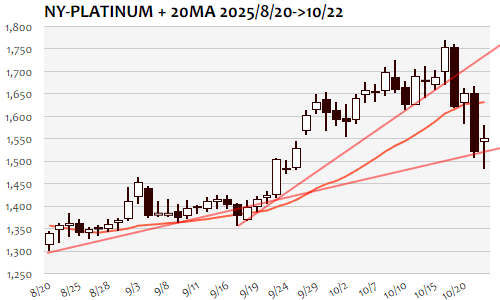 国内金価格は半年ぶり、プラチナはコロナ禍以来の大幅調整 10/20(月)