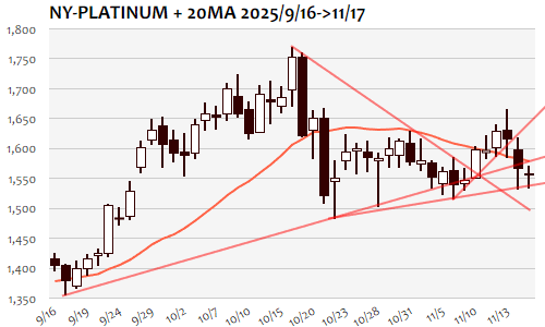 NYプラチナ:1,555.7 ドル 11/17(月)